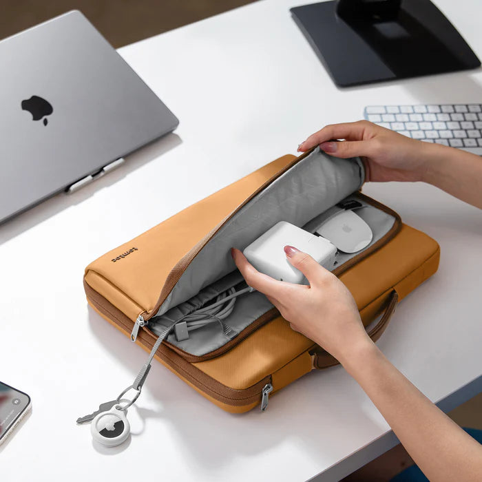 When most office jobs required more formal dress, and we store everything electronically, tomtoc versatile laptop briefcase A14 is designed for short trips between car, office, and boardroom. It is the best choice for commuters who travel light and with lots of accessories frequently. The front pocket offers enough space to easily hold everything you'll need for a day at the office and more.