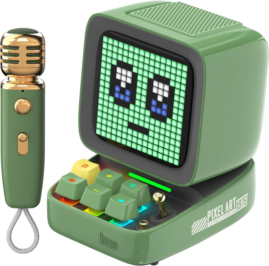 Divoom Ditoo-Mic is a new model Karaoke machine with display. It allows you to connect to the Karaoke speaker via bluetooth connection Comes with a mini microphone for singing freely, Ideal for gathering singing, family singing, live show, etc.