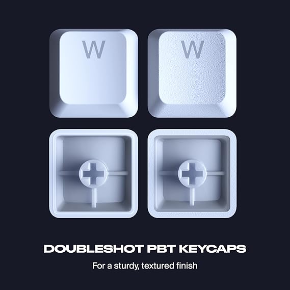 - DOUBLESHOT PBT KEYCAPS FOR A STURDY, TEXTURED FINISH | The first low profile doubleshot PBT keycaps in the world. Doubleshot PBT keycaps are thicker, and more durable, with up to 1.5mm thickness on each side wall. These keycaps are more durable, and resistant to shine caused by wear and tear.