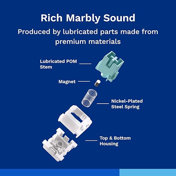 - Premium Materials: Crafted using strong yet flexible nylon, these switches produce rich, marbly typing acoustics, enhancing the overall typing experience.
