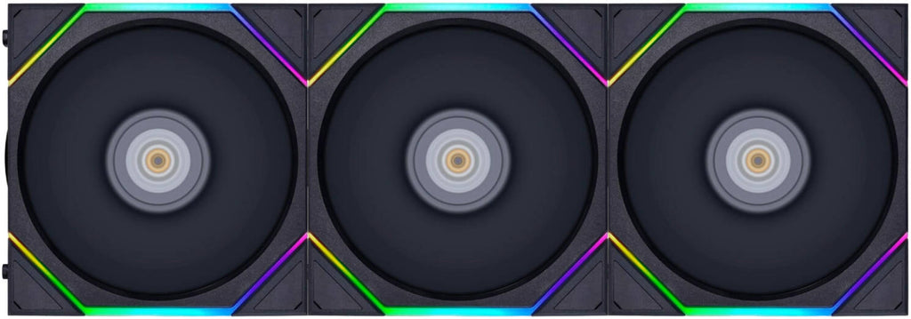 Lian Li Uni Fan TL 120 Case Fan, 120mm Fan Size, 2600 RPM Fan Speed, 90.1 CFM Airflow, PA66 / Liquid Crystal Polymer Materials, Fluid Dynamic Bearing, W/ Controller, Triple Pack, Black | G99.12TL3B.00