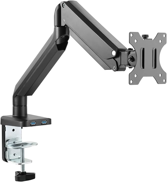 FREE UP YOUR DESK SPACE: Heavy duty monitor arm with built-in cable control professional helping to hide wires. The arm free up desk space while creating a more comfortable work environment. More desk space, better workflow!