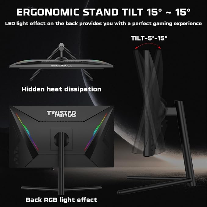- Flat Display: Twisted Minds monitor comes with a 27-inch display that offers an prefect canvas for your digital experiences. A screen that's larger than many standard monitors. This generous size allows you to fully immerse yourself in your activities, whether you're gaming, watching movies, or working on projects. You won't feel squeezed or cramped, and you'll appreciate the extra space for multitasking and enjoying content in all its glory.