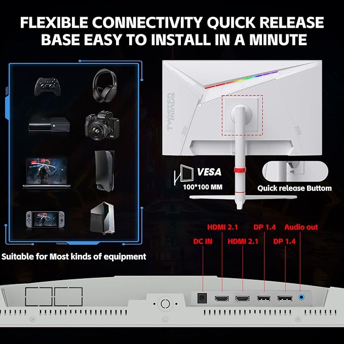 With dual HDMI 2.1, dual DP 1.4, and audio out, this monitor is compatible with the latest gaming consoles like Xbox Series X|S, PS5, and PC systems. The Ambilight RGB lighting adds a touch of style to your setup, while the adjustable stand ensures ergonomic comfort with tilt, swivel, pivot, and height adjustments.